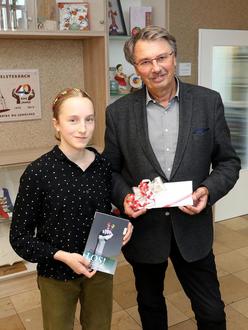 Bürgermeister Manfred Ockel empfing die Schülerin im Rathaus, um ihr persönlich zum Erfolg im Schreibwettbewerb zu gratulieren und ein Geschenk zu überreichen. Er wünschte ihr alles Gute für ihren schulischen Weg und gab seiner Hoffnung Ausdruck, dass sie auch weiterhin Muße finden möge, etwa für das Schreiben.
