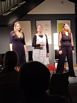 Das Trio Beate Krist, Lisa Rau und Katrin Aldorf brachten die Stimmen ungehörter Frauen auf die Bühne. Beate Krist trug große Monologe literarischer Frauenfiguren vor. Darunter z.B. Desdemona und Lysistrate. Mit ihrer schauspielerischen Leistung transportierte sie Freude, Angst, Scham aber auch große Kraft und Selbstbewusstsein. Umrahmt wurden die Monologe durch passende Arien, gesungen von Lisa Rau und begleitet am Klavier durch Katrin Aldorf. Rau und Aldorf waren nicht nur Musikerinnen, auch sie hatten jeweils Monologe zu sprechen oder kommentierten das Handeln von Krist. Die Verbindung zur Gegenwart schaffte das Trio mit einer überspitzten Schlussszene einer überforderten Mutter, die beim Versuch, alles richtig machen zu wollen scheitert und letztlich aufgibt. Diese Szene hinterließ ein Schmunzeln auf den Gesichtern des Publikums, regte aber auch zum Nachdenken an. Jenes dankte dem Trio mit langanhaltendem Applaus.