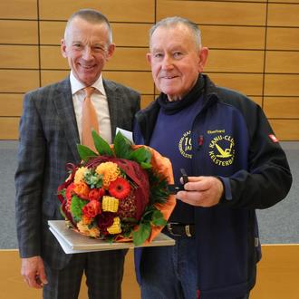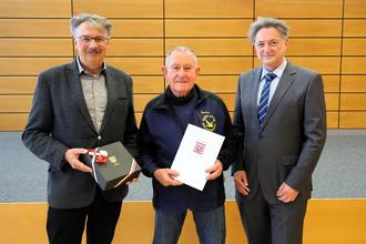 Landrat Thomas Will (links) überreichte Eberhard Przypadlo den Landesehrenbrief.