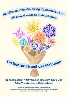 Der Handharmonika-Spielring Kelsterbach e.V. lädt Sie, gemeinsam mit dem Akkordeon Club Goldstein, herzlich zum traditionellen Herbstkonzert ein. Hier erwartet Sie ein bunter Strauß an Melodien aus verschiedenen Jahrzehnten und Musikrichtungen: Von den beliebtesten Italo Pop-Hits zum Western Medley und von Elton John zu Udo Jürgens. Wir freuen uns auf einen musikalischen Abend mit Ihnen!