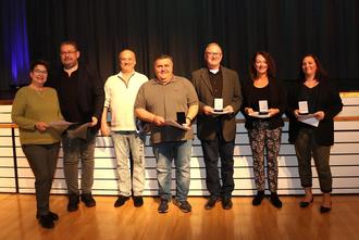 Die Trägerinnen und Träger der Ehrenplakette in Bronze...