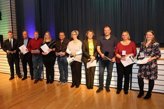 Bürgermeister Ockel moderierte die Verleihung der Ehrenplaketten, die für mindestens zehn Jahre Tätigkeit im Ehrenamt in Bronze, für mindestens 15 Jahre in Silber und für mindestens 20 Jahre in Gold verliehen wurden. Nach einer weiteren Performance von „Wheel Sensation“ stand schließlich die höchste Ehrung der Stadt auf dem Programm: Die Verleihung des Ehrenbriefs für 25 Jahre ehrenamtlicher Tätigkeiten. Über diese Würdigung, die noch durch einen Präsentkorb ergänzt wurde, durften sich Michaela Beck (Trainerin der Girls in Motion), Rainer Georgi (1. Vorsitzender der SG Bahnhof), Margot Herth (1. Vorsitzende der Hobbykünstler), Sabine Hörauf (Kirchenvorsteherin der Evangelischen Christuskirchengemeinde), Ulrich Kaczenski (Vorstand der Gemeinnützigen Baugenossenschaft), Jürgen Küchler (Vorsitzender des Square-Dance-Clubs „Oakleaves“), Jörg Ritzkowsky (Ortsgerichtsvorsteher/Schiedsmann), Rainer Schink (Stellvertretender Vorsitzender Aufsichtsrat der Gemeinnützigen Baugenossenschaft), Thorsten Schreiner (Vorsitzender des Vereinsrings), Birgit Spranger (Kirchenvorsteherin der Evangelischen Christuskirchengemeinde), Peter Thole (Leiter Öffentlichkeitsarbeit des Motor-Sport-Clubs), Christa van der Burg (Vorstand der Frauenhilfe der St. Martinsgemeinde) sowie Matthias Wolf (stellvertretender Vorsitzender DLRG-Bezirk) freuen. Eine Auflistung aller geehrten Personen finden sich auf der städtischen Homepage im Bereich "Pressemitteilungen".