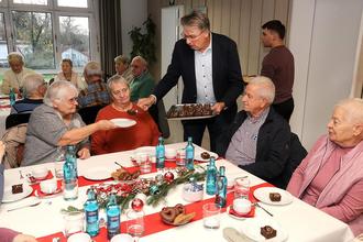 Bürgermeister Ockel half mit bei der Bewirtung der Gäste.