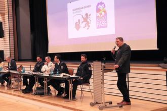 Die Polizei war auf dem Podium präsent mit dem stellvertretenden Leiter der Polizeidirektion Groß-Gerau, Patrick Sebischka, einem Kompass-Berater am Polizeipräsidium Südhessen, Frank Heisel, dem stellvertretenden Leiter der Kelsterbacher Polizeistation, Timo Braunbeck, und dem Kelsterbacher Schutzmann vor Ort, Marc Heinrich.