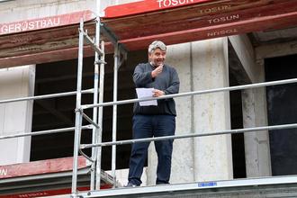 Den traditionellen Richtspruch brachte Matthias Lanz, Inhaber der bauausführenden Firma, aus. Er wünschte Glück und Segen für das neue Haus und seine zukünftigen Nutzer. (wö)