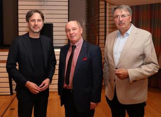 Von links: Der Frankfurter Stadtrat Marcus Gwechenberger, Hartmut Blaum und Bürgermeister Manfred Ockel.