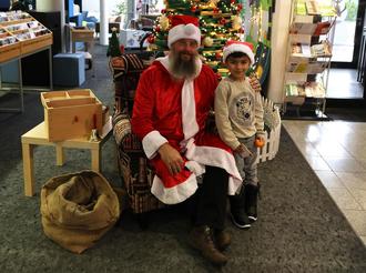 Schön sei auch, dass die Aktion in diesem Jahr wieder in der Bibliothek stattfinden konnte. Im vergangenen Jahr musste der Nikolaus mit dem Bibliotheksfahrrad auf den Rathausplatz fahren, um dort bei kühlen Temperaturen seine Gaben zu verteilen. „Da hat er es hier doch sehr viel schöner“, lacht Betzold. Nach rund zweieinhalb Stunden voll fleißigen Verteilens von süßen Leckereien und Posieren für Fotos verabschiedete sich der Nikolaus wieder und zog zu seinem nächsten Einsatz von dannen. (sb)