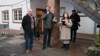 Carsten Höfer, Bürgermeister Manfred Ockel und Pfarrerin Helen Lee eröffneten gemeinsam den Sankt Martins-Weihnachtsmarkt.
