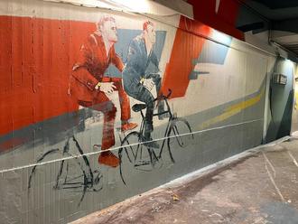 Die künstlerische Gestaltung der Fußgänger- und Radfahrerunterführung am Kelsterbacher Bahnhof nimmt immer weiter Gestalt an. Zwar ist die Wand, die die Künstler derzeit bearbeiten, größtenteils mittels Planen den Blicken der Passanten entzogen, aber wer zwischen den Lücken hindurchlugt, kann die entstehende farbenfrohe Gestaltung bereits betrachten. Mitte der Woche wurde auch damit begonnen, die Lichtinstallation an der Decke anzubringen. Bereits jetzt wird deutlich, dass sich hier ein vormals trister, dunkler Tunnel in einen farbenfrohen, lichtdurchfluteten, einladenden und von Kreativität geprägten Ort verwandelt. (wö)