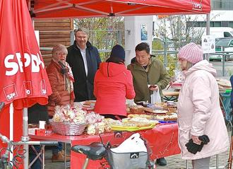 Am 29. November 2024 verwandelten die SPD-Damen den Rathausplatz in ein Paradies für Kuchenliebhaber. Unter den bewundernden Blicken von Bürgermeister Manfred Ockel, der sich persönlich eine Kostprobe gönnte, wurden insgesamt 19 große Kuchen, 11 kleine Kuchen, schon verpackt als Geschenk, 6 Blechkuchen und 144 Beutel mit Weihnachtsplätzchen verkauft. Der Erlös kommt karitativen lokalen Organisationen zugute.