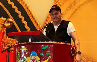 Freuen durften sich auch die anwesenden Seniorinnen und Senioren. Denn ihnen wurde neben leckeren Kreppeln, Kaffee, Apfelwein und verschiedenen Kaltgetränken jede Menge Musik und Humor geboten. So gab der Musiker und Entertainer Lothar mit bekannten Stimmungs-Hits wie „Die Hände zum Himmel“, „Die Runkelroiweroppmaschin“ von Adam und die Micky’s oder dem hessisch eingefärbten „E bissi Spaß muss sei“, umrahmt von einer charmant-spaßigen Moderation, sein gelungenes Debüt in der Untermainstadt. Bereits mit seinen Worten „Ich grüße Euch in diesem Bau, mit einem dreifach kräftigen Kelsterbach Helau“, gelang es ihm, das Publikum für sich zu gewinnen. Mit auf der Bühne war sein Sohn Alex, der ihn nicht nur in Sachen Technik unterstützte, sondern ihn auch musikalisch begleitete.