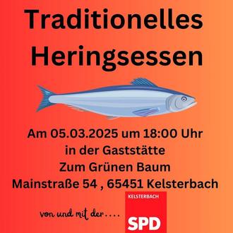Der SPD-Ortsverein Kelsterbach lädt herzlich zum traditionellen Heringsessen am Aschermittwoch ein.