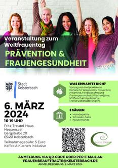 Zum Weltfrauentag, am 6. März, veranstaltet die Stadt Kelsterbach eine Veranstaltung zum Thema Frauengesundheit und Prävention.