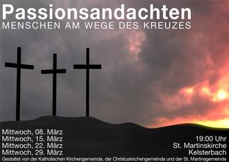 Die Andachten finden ab 8. März immer mittwochs um 19:00 Uhr in der St. Martinskirche statt und werden in diesem Jahr von der Katholischen Kirchengemeinde, der Christuskirchengemeinde und der St. Martinsgemeinde vorbereitet und gehalten.