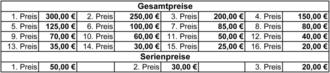 Siegerehrung um 18.15 Uhr. Beispiel bei 80 Teilnehmern; das Startgeld wird der Teilnehmerzahl angepasst!