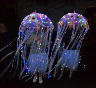 Ein durchaus praktisches Kostüm präsentierten diese Quallentiere. Sie waren zumindest gut geschützt vor dem strömenden Regen.