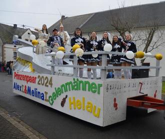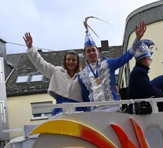 Prinz Benni I. und Marie I. vom KV Ruck Zuck beim Rosenmontagsumzug in Hermeskeil.