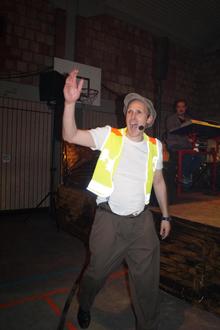 Michael Malburg als Mann von der Gemähn kommentiert die Elektroschäf auf der Freiflächen-PV-Anlage, die Bürgermeister Uli Frohn als Beamte eingestellt hat. Sie grasen immer sehr weit weg von ihrer eigentlichen Arbeit.