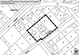 Der räumliche Geltungsbereich des vorhabenbezogenen Bebauungsplanes „Am Sportplatz, 5. Änderung“ ist der Flur 6 in der Gemarkung Appenheim zugeordnet und umfasst die Flurstücke Nr. 51/5, 51/6, 51/8, 51/14 und 51/15.