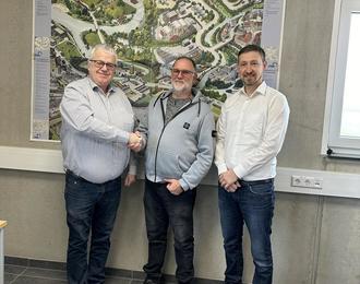 Bürgermeister Manfred Scherer, Wolfgang Hemmkeppler und Eugen Spenst, Fachgebietsleiter des technischen Service der VG Werke AöR