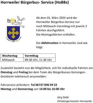 Ab dem 01. März 2024 wird der Horrweiler Bürgerbus-Service nur