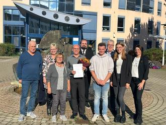 Dafür erhält Christopher Baldauf aus den Händen von Landrätin Dorothea Schäfer die Ehrennadel des Landes Rheinland-Pfalz. Eine herzliche Gratulation kommt auch von Bürgermeister Manfred Scherer, dem Grolsheimer Ortsbürgermeister Florian Hanau und – natürlich von seiner Familie.