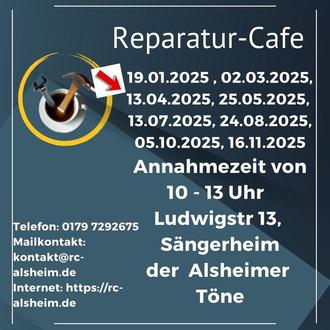 Am 13.04., 25.05., 13.07., 24.08., 05.10. und 16.11.2025 wird das Reparaturcafe wieder von 10 bis 15:00 Uhr öffnen.
