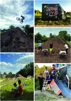 Mit großer Unterstützung durch die Nachbarschaft, die viel Verständnis für die Spontaneität und Wetterabhängigkeit des Projekts aufbrachte, wurde auf dem Gelände eine tolle Freizeitbeschäftigung für Jugendliche geschaffen. Ob Rüttelplatte, Wasser oder anderes Werkzeug – unsere Nachbarn halfen uns immer wieder aus, um mit dem Bau voran zu kommen. Auch Familien mit jüngeren Kindern sind nun herzlich willkommen, den Anfängerparcours mit dem Laufrad auszuprobieren. Allerdings ist die Dirt-Bahn kein Spielplatz. Je nach Wetterlage macht das Laufen und Toben auf der Bahn die Fahrspur kaputt. Vor allem die Landefläche hinter dem großen Kicker lädt zum Hochklettern ein. Das bereitet dem Team viel Arbeit und verringert die Sicherheit bei der Landung.