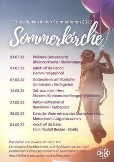 An den Sonntagen der Sommerferien 2022 werden die Gemeinden Alsheim, Eich, Gimbsheim, Hamm, Ibersheim, Mettenheim und Rheindürkheim wunderbare Gottesdienste feiern.