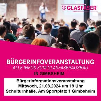 Die Deutsche Telekom lädt alle Bürger*innen und Unternehmer*innen in Gimbsheim zu einer Informationsveranstaltung ein. Thema ist das neue Glasfasernetz in Gimbsheim.