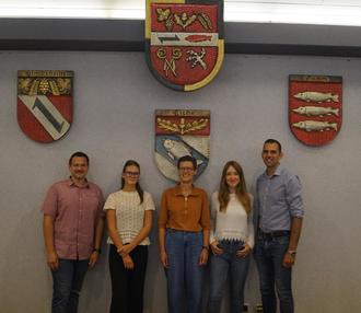 Bürgermeister Maximilian Abstein begrüßt herzlich zwei neue Kolleginnen sowie eine Auszubildende zur Verwaltungsfachangestellten im Team der Verbandsgemeindeverwaltung.