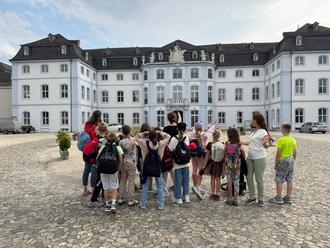 Der nächste Tag hielt ein volles Programm bereit: Neben einer Besichtigung des prunkvollen Schlosses Engers standen viele musikalische Erfahrungen im Mittelpunkt. Der Profischlagzeuger Alex Sauerländer führte die Klasse ins mitreißende „Trash Drumming“ ein, bei dem sich die Klasse gut eingrooven konnte. Zum Abschluss erlebten die Kinder eine Einführung ins Harfenspiel - ein leiser, fast märchenhafter Ausklang nach einem intensiven Tag.
