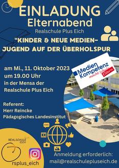 An der Realschule Plus Eich konnten wir Herrn Reincke, Honorarreferent für das Pädagogische Landesinstitut, gewinnen, der am Mittwoch, 11.10.23 um 19 Uhr über folgende Themen in der Mensa der Realschule Plus Eich referiert: