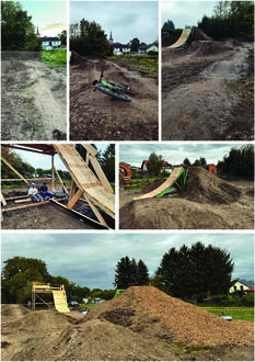 Die Jugendlichen, die an dem Projekt beteiligt sind, konnten auch schon ein paar Runden, die in unterschiedlichen Schwierigkeitsgraden angelegt sind, ausprobieren. Die Bahn bleibt allerdings bis auf weiteres gesperrt. Noch nicht alle Hügel sind verdichtet oder fertig ausgerichtet. Vor allem der Startturm ist noch nicht zur Nutzung freigegeben. Hinter dem Baustellenschild und dem rot-weißen-Absperrband darf aber gerne bewundert werden, was die Jugendlichen alles geschafft haben. Dank Familie Weber von Büttel GmbH die einen Berg Erde ablieferten und Familie Schiller die mit Rindenmulch und Arbeitskraft vorbeikam, war genug Material zum Schaufeln da. Viele liebe Nachbarn und hilfreiche Eltern unterstützen das Langzeitprojekt und geben den Kindern und Jugendlichen eine tolle Chance ihre Ideen umzusetzen.