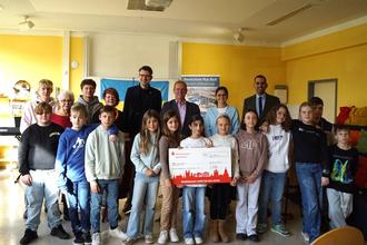 Bürgermeister Abstein lobt anerkennend die Hilfsbereitschaft der Schülerinnen und Schüler: „Mit eurem Engagement zeigt ihr immer wieder, wie viel man gemeinsam erreichen kann. Diese Summe ist eine großartige Leistung!“