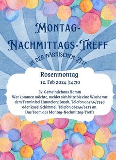 Der nächste Treff wird am Montag, den 12. Februar 2024 um 14.30 Uhr stattfinden und wir hoffen, viele von euch begrüßen zu können.