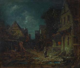 Carl Spitzweg, Dorfstraße mit Nachtwächter