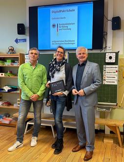 v.l.n.r: Rektor Dieter Gutzler, Koordinatorin für digitale Bildung Angela Schumacher und Bürgermeister Walter Wagner