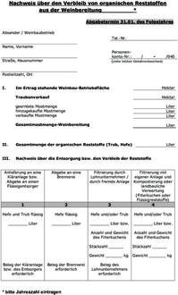 2. Nachweis über den Verbleib organischer Reststoffe (Bringsystem)