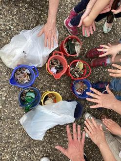 Die Kinder waren mit Eimern und Zange bewaffnet und kamen mit vollen Eimern und viel Durst wieder in der Kita an.
