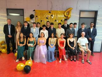 Nach einem Tanz der Klasse 10a und einer Rede von Janis Djabout (10b) gaben die Klassen 10a und 10b mit zwei Videos einen Einblick in ihren manchmal verrückten Schulalltag und die Klassenfahrt in Klasse 10. Auch Michel Schmitt blickte auf ein bewegtes Schuljahr der Praxistagklasse 9c zurück.