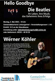Montag, 5. Mai - 18 Uhr: „Hello Goodbye - Die Beatles - Ihr Leben, ihre Musik, das Geheimnis ihres Erfolgs“ mit Werner Köhler - Eintritt: 10 € Bitte anmelden unter: bibliotheklimburgerhof@t-online.de