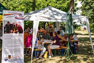Mit Informationen rund um das 50. Jubiläum der Städtepartnerschaft war der Partnerschaftsvereins Limburgerhof-Chenôve auch auf dem Bürgerfest vertreten. Neben Programm-Flyern gab es natürlich viele persönliche Gespräche, ein Angebot, das schon in den Wochen vorher bei mehreren Terminen auf dem Wochenmarkt gut angenommen worden war.