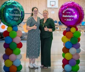 Alles klar für die Einschulung! Rektorin Birgit Meyer (rechts) und Konrektorin (in Prüfung) Jennifer Kopf begrüßen die ABC-Schützen an der Domholzschule