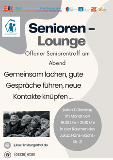 Ab November gibt es an jedem 1. Dienstag im Monat ein neues Angebot für Senioren. Initiiert von der Gemeindeschwester plus Maren Schneider zusammen mit dem JugendKulturZentrum Limburgerhof (JUKUZ) treffen sich Menschen im besten Altern, um gemeinsam Zeit zu verbringen, sich auszutauschen und neue Bekanntschaften zu schließen.