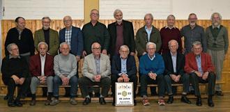 Erwerber des Deutschen Sportabzeichens von links: Lothar Patzke, Lothar Krisch, Manfred Binz, Heinz Vier, Siggi Sczech, Reinhard Menges, Hermann Thelen, Walter Schütz, Johann Polt fotografiert