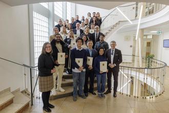 Eine weitere Überraschung war der Besuch zweier Wandergesellen, die auf ihrer Reise zu neuen Wirkungsstätten einen Zwischenhalt in der Kreisverwaltung machten – gelebtes Brauchtum, das der Landrat mit einem großzügigen Geschenk bedachte.