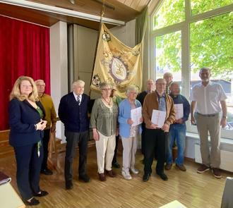 V.l.n.r.: Kassenwartin Bärbel Glas, Ludwig Schwartz, Adolf Glas, Stv. Vorsitzende Karola Sprengart, Rita Klomann, Heidi Stripf (60), Klaus Sprengart, Werner Trauth (60), Peter Doll, Hans-Georg Hofmann (40), Vorsitzender Kurt Freudenreich Weitere Jubilarinnen und weiterer Jubilar: Angelika Hofmann (40), Barbara Schneider (40), Wolfgang Schneider (40)