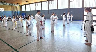 Top Prüfung der Tiger am 03.05.2025 in der Münchhofschule in Hochspeyer. 18 höhere Gürtel wurden von 7. Dan K. O. Uebel aus Idar-Oberstein an die Taekwondo Tiger aus Hochspeyer verliehen. Von Weiß-Gelb bis 1. Dan Anwärter waren alle Gürtel vertreten.
