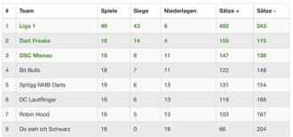 Die SpVgg NMB Darts erreicht in ihrer Debütsaison einen respektablen 4. Platz (Liga A ausgeklammert)!